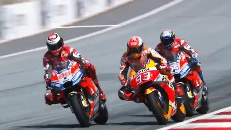 Sejak dimulai start MotoGP Austria, Marc Marquez yang menjadi pole position berhasil dilewati oleh pembalap Ducati Andrea Dovizioso. Namun tidak berlangsung lama karena rekan satu timnya Jorge Lorenzo berhasil menempel Marc Marquez.