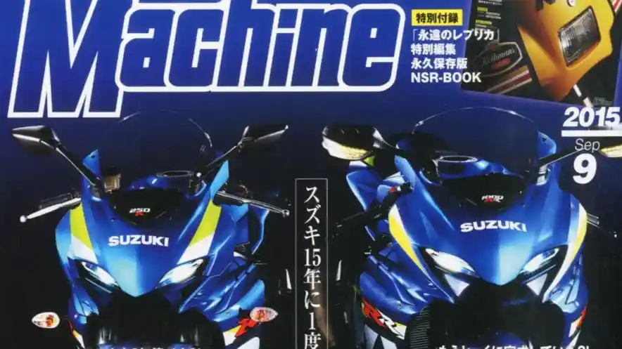 Majalah Young machine itu menampilkan gambar dua motor GSX-R yang terlihat sangat mirip. Tampak Suzuki GSX-R1000R dan GSX-R250R tampil mengusung livery yang mirip dengan motor balap Suzuki GSX-RR di MotoGP. Namun secara dimensi, motor yang bertuliskan GSX-R250 terlihat lebih ramping. Motor sport Suzuki itu diisukan akan mengambil desain GSX-R1000R. Hal ini terlihat jika mengamati gambar di majalah yang bertuliskan full huruf kanji ini. Mulai dari bentuk lampu, windshield, hingga lekukan fairing GSX-R250R plek sama persis dengan yang 1.000 cc. Hingga bagian atas tangkipun juga terlihat kembar.