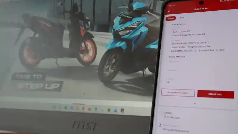 Melalui fitur riwayat servis di aplikasi Wanda, konsumen dapat mengikuti seluruh tahapan servis motor, mulai dari kendaraan masuk ke bengkel resmi Honda, proses pengerjaan, hingga transaksi dinyatakan selesai dan motor siap diambil.