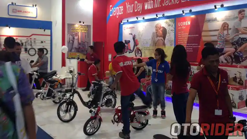 Dalam pameran kali ini, MR. Jackie membawa tiga varian sepeda listrik, sepeda lipat Rp 4,4 juta per unit, lalu tipe Voren yang berharga Rp 5,9 juta sampai Vettle EN-905 Rp 7,4 juta.