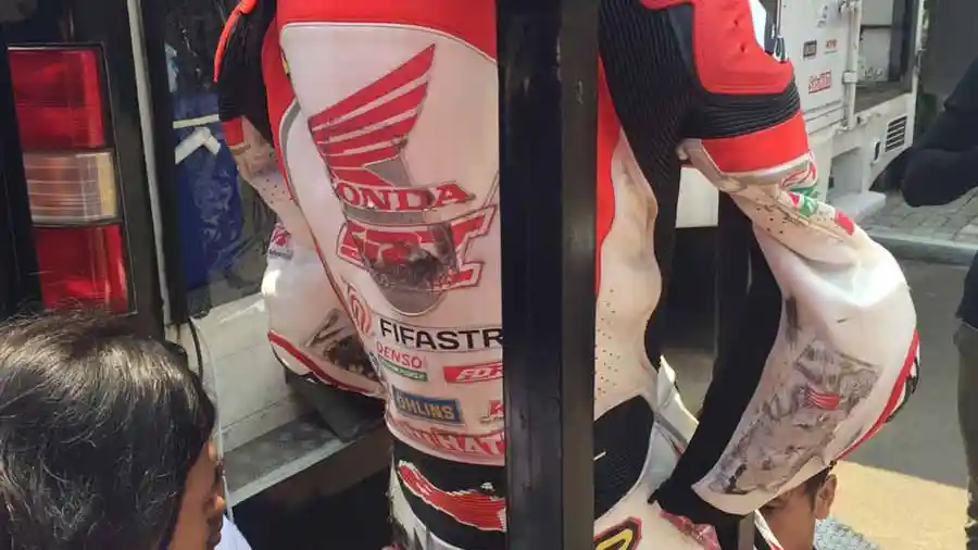 “Sebagai komitmen kami kepada para pemakai apparel Alpinestars, kami menyediakan satu buah service car dengan perlengkapan seperti mesin pengering, mesin jahit, peralatan untuk membersihkan kulit dan spare part branding,” terang Frans Lee dari Cargloss Proriders. “Beberapa jasa service yang bisa kami lakukan adalah membersihkan serta memberikan lotion khusus supaya baju balap tidak kering dan kaku, merepaint bagian-bagian tertentu yang terkena aspal dengan cat khusus, memasang kembali logo sponsor yang rusak parah sampai dengan meresize sebuah baju balap.” lanjut Frans.