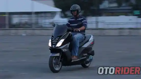 Masuk ke rintangan zig-zag pada kecepatan rendah, scooter yang punya bobot kosong 145 kg, dapat meliuk-meliuk diantara cone tanpa kesulitan. Sehingga dirasa cocok untu diajak bertarung melawan lalu lintas yang padat.