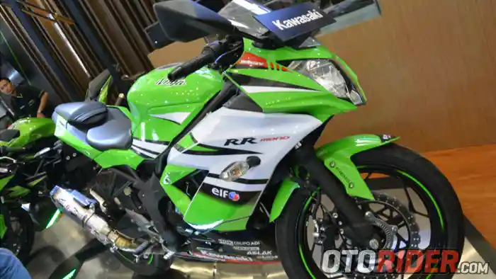 "Knalpot racing ini hanya opsional. Konsumen bisa langsung minta dipasang, atau membeli secara terpisah. Memang untuk display ini sengaja kami pasang," ucap salah seorang sales Kawasaki.