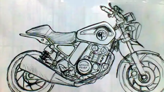Belum ada gambar resmi yang dihadirkan, namun terdapat sketsa untuk model Mini Scrambler yang didapat dari sumber terpercaya kalau motor tersebut akan seperti gambar ini. Dengan knalpot besar, ukuran pelek yang kecil namun lebar serta penggunaan twin sokbreker dibelakangnya. Wah menarik nih! (otorider.com)