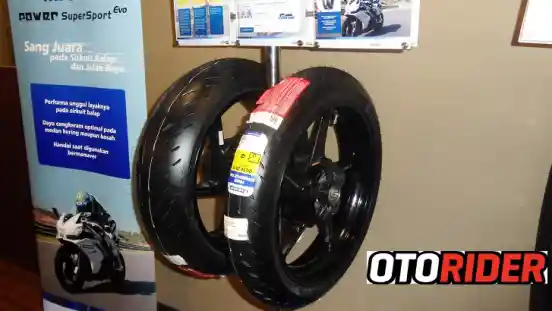 Michelin Power Supersport Evo sementara tersedia untuk big bike yang menggunakan pelek berdimensi 17 inci. Tampak dari unit ban yang dipajang dalam acara tersebut, ban depan berukuran 120/70R17 dan belakang 180/55R17.
