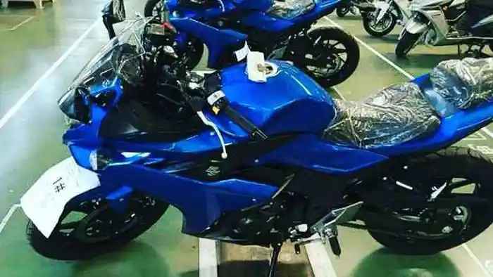 Terlihat sosok motor dengan kelir biru dengan single head lamp bersudut tajam khas Suzuki GSX menjadi andalannya. Yang menarik, tampilan full fairingnya jelas lebih atraktif ketimbang Gixxer yang ada di India.