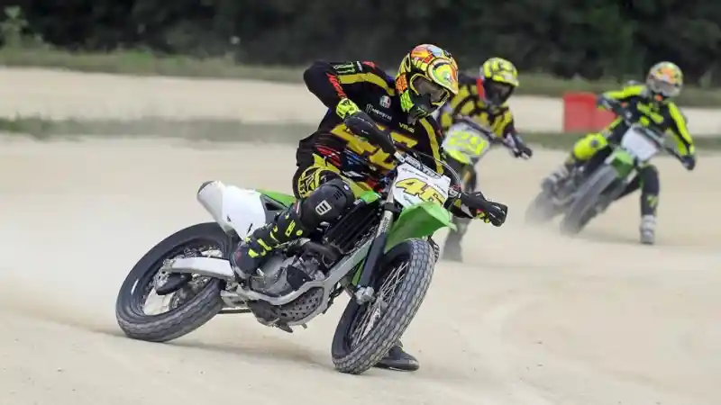 Pada sela-sela kesibukannya sebagai top rider di MotoGP, ternyata Valentino Rossi masih sempat bersenang-senang di trek bukan aspal. Seperti yang dilakukannya di MotoRanch di Tavullia yang merupakan tempat special bagi Rossi.