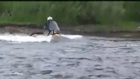 Mungkin Anda berpikir aksi berikut ini nekat, tetapi sepertinya menyeberang sungai dengan sepeda motor sudah biasa bagi masyarakat Rusia. Entah karena kebanyakan nyali atau tak cukup dana buat bikin jembatan, banyak sekali video nekad yang menayangkan pengendara Rusia yang sedang menyebrangi sungai, danau dengan kendaraan bermotor. Mobil, truk ataupun sepeda motor seperti ini dipakai juga buat menyeberang sungai.