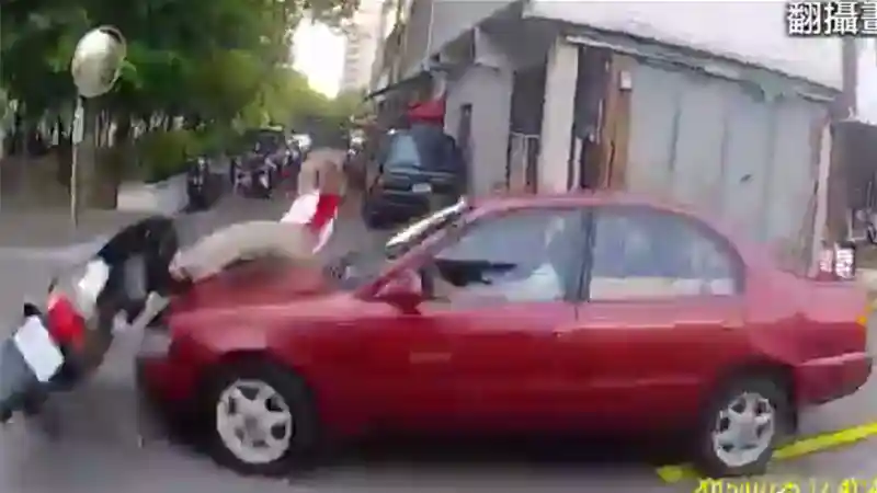 Selap-selip di kepadatan lalu lintas Taiwan pun dilakukan si pencuri. Sampai lawan arus dan melanggar lampu lalu lintas dan rambu-rambu sampai akhirnya terhenti karena dihantam mobil dari kanan. Harap sama sekali-sekali jangan mencontoh aksi seperti ini, ya.