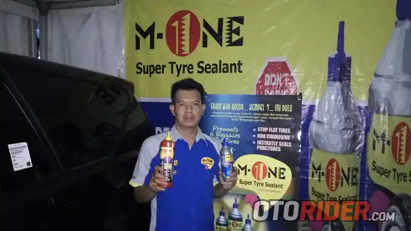 Mengatasi hal itu, ada solusi yang menarik. Yaitu menggunakan cairan ban antibocor. M-One Super Tyre Sealant salah satunya yang sudah hadir di Indonesia dari tahun 2010. Mungkin Anda juga pernah mendengar. Karena mulai bisa ditemukan di pasaran sejak 2012. M-One Super Tyre Sealant ini buatan asli Indonesia dengan lisensi dari Thailand. Nah, cairan antibocor ini juga hadir di Burtor alias Bursa Motor di Senayan, Jakarta.