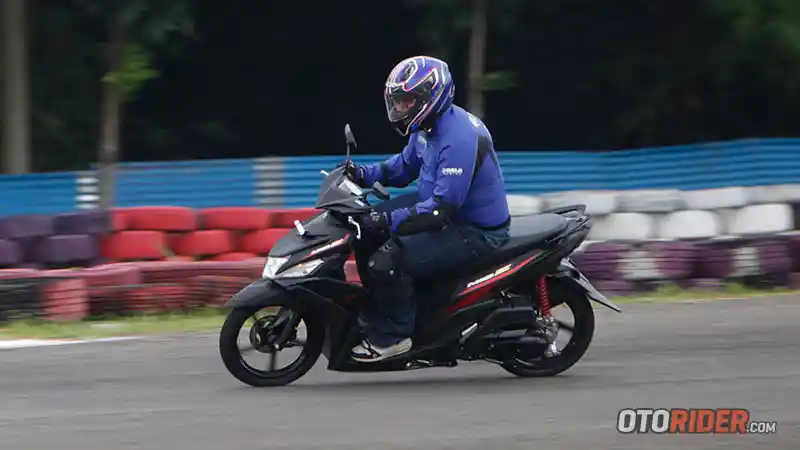 Dan dalam sesi tes selama tiga lap ini, kami cukup merasakan perbedaan mendasar antara Mio Z dan abangnya, Mio M3 yang notabene masih satu basis. Penggunaan ban lebar membuat handling makin percaya diri, apalagi Mio Z tetap didukung bodi ramping yang lincah. Bisa jadi alternatif jagoan sehari-hari. (otorider.com)