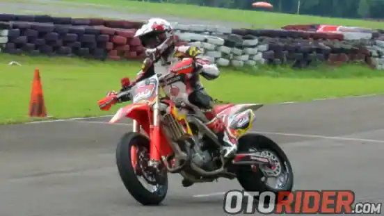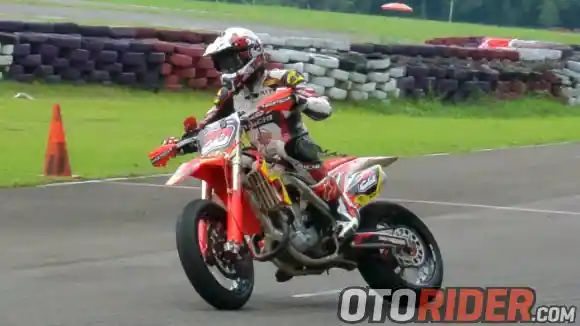 Beberapa waktu lalu, rider tim Astra Honda Racing yang siap berlaga di ajang Supersport ARRC 2016 dan CEV Moto2, Dimas Ekky Pratama melatih fisik dengan menggeber Honda CRF450 yang sudah dimodifikasi bergaya supermoto di Sentul kecil.