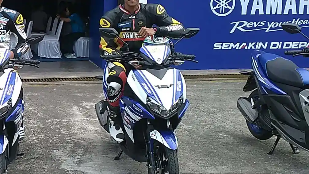 Pembalap yang baru saja mendapat pendidikan di Jepang tersebut berkesempatan geber Yamaha Aerox 120 LC yang punya mesin mesin 4 stroke 125 cc liquid cooled. Tenaganya diklaim mampu tembus hingga 11,2 hp pada 9.000 rpm dan torsi 10,4 Nm pada 6.500 rpm.