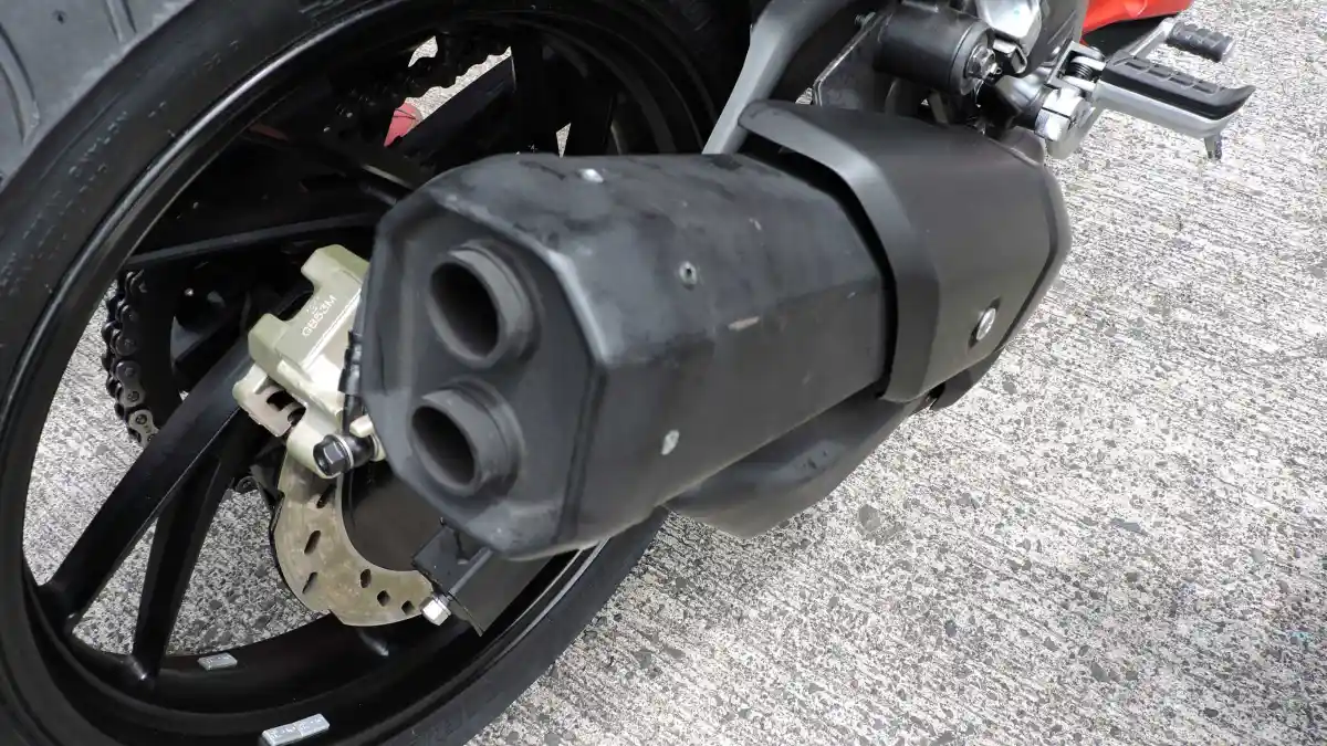 Naked bike baru TVS Apache RTR 200 punya knalpot double barrel yang berbentuk unik, disinyalir supaya menghasilkan suara seperti big bike.