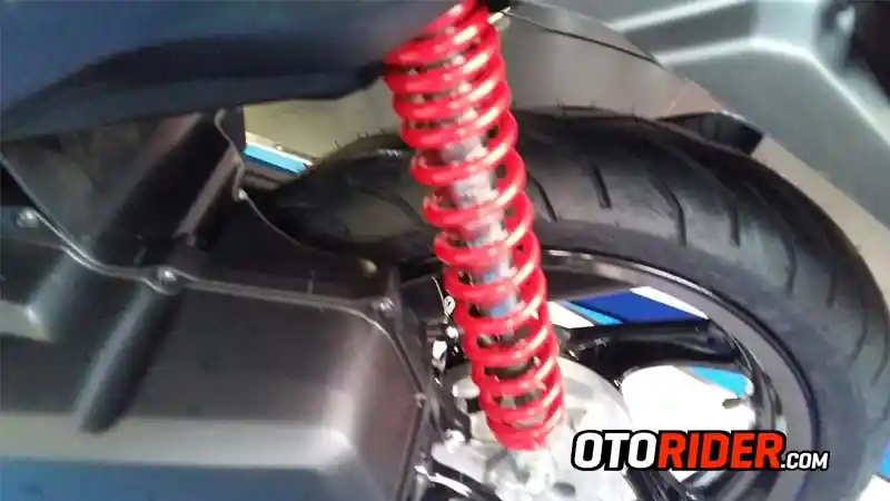 Perbedaan selainjutnya, masih dari kaki-kaki, suspensi belakang Mio Z kini dikawal sokbreker warna merah. Namun, perbedaan hanya pada warna saja, karena tak ada perbedaan spek pada versi Mio M3 dan Mio Z.