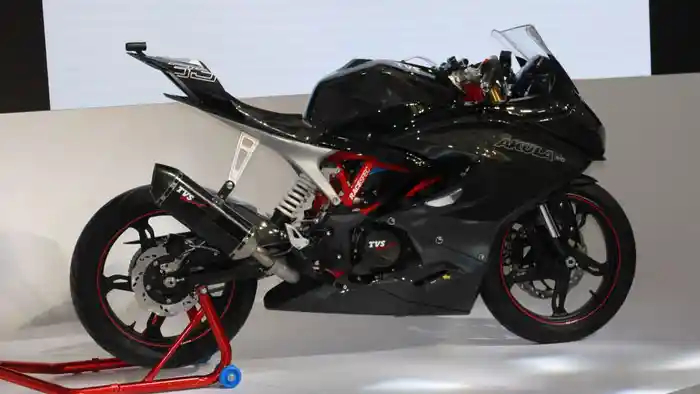 Sebagai catatam mendukung penampilannya, TVS menyematkan beberapa komponen ringan pada tubuhnya. Seperti frame yang terbuat dari aluminium dan fairing berbahan serat karbon. Dari kedua gabungan bahan tersebut, sudah bisa digambarkan motor yang terinspirasi dari hiu ini memiliki bobot yang ringan.