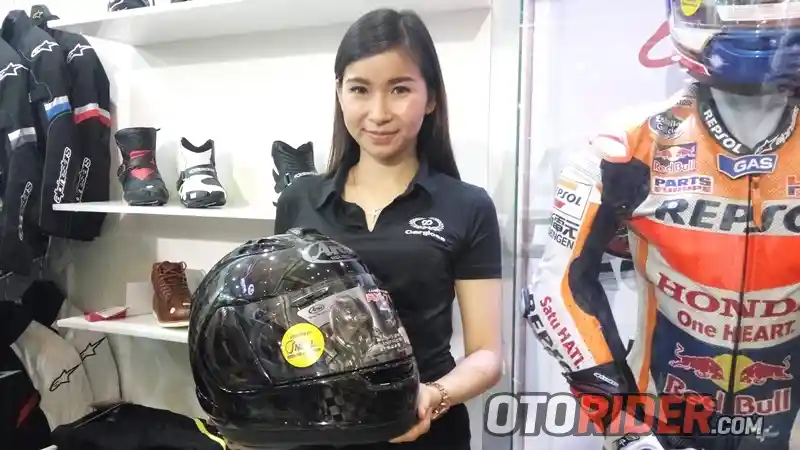 Yup, helm karbon yang harganya cukup mahal ini, adalah helm keluaran produsen asal Jepang, berjuluk Arai RX7 RC (Racing Carbon), yang dijual di IMOS seharga Rp 38 jutaan!