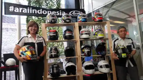 Terdapat juga informasi toko tempat pembelian resmi beserta alamat lengkap untuk bisa mendapatkan helm Arai di Indonesia, seperti Cargloss Proriders di FX Sudirman, Cargloss Proriders Bogor di jalan Pajajaran, Cargloss Proriders Surabaya di Lenmarc Mall dan di Ohlins Indonesia yang terdapat di jalan Cikini Raya, Jakarta.