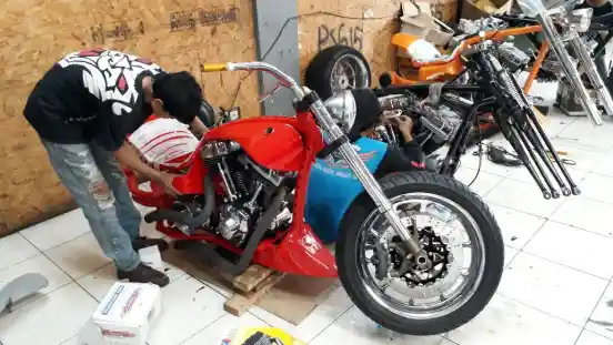 Enggak cuma moge, motor 'laki' seperti Tiger dan Scorpio dengan gaya cafe racer, scrambler, flat tracker, dan bratz style yang banyak dipilih. Biaya modifnya mulai dari Rp 30 jutaan dengan lama pengerjaan paling cepat 1 bulan. Langsung saja merapat ke Baru Motor Sport, Jalan Palmerah Barat no. 25, Jakbar. Atau telpon dulu ke 081915113717.