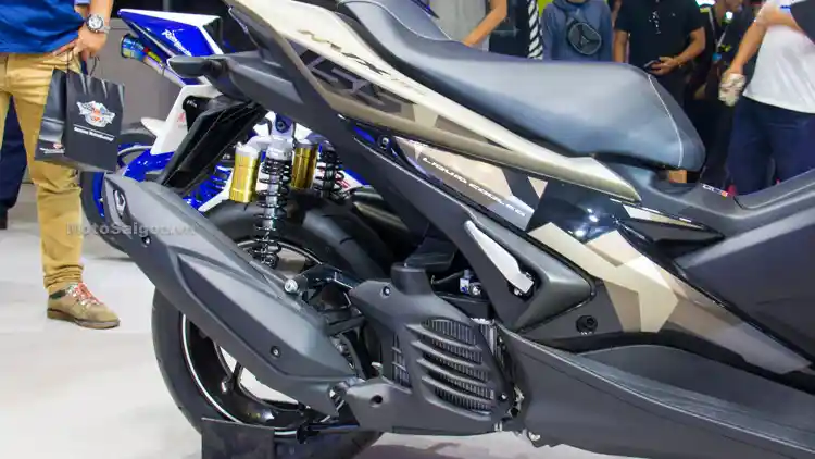 Di mana NVX 155 Camo mengandalkan kelir coklat dengan kamuflase gelap dengan aksen tajam. Terlihat makin sporty. Selain itu, suspensi belakang juga mengandalkan model tabung yang mirip dengan Aerox R Version, hanya saja NVX 155 Camo tanpa cakram bergelombang.