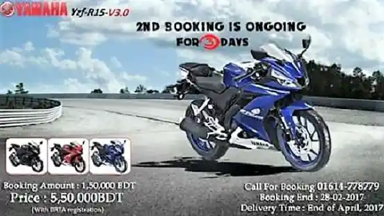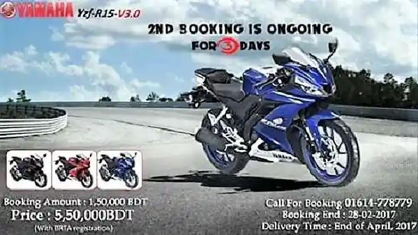 Seperti dikutip dari Motoroids, Yamaha Bangladesh sudah memberanikan diri untuk membuka booking dari R15 V3.0, julukan lain R15 2017 di negara-negara Asia Selatan, seperti India, Pakistan dan Bangladesh.