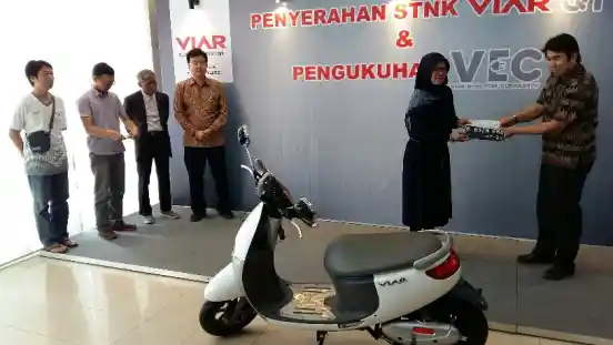 Setelah diluncurkan pada Juni lalu, maka hari ini (5/8), PT Triangle Motorindo, produsen motor Viar mulai melakukan penyerahan Surat Tanda Nomor Kendaraan (STNK) skuter listrik Viar Q1 pada konsumen.