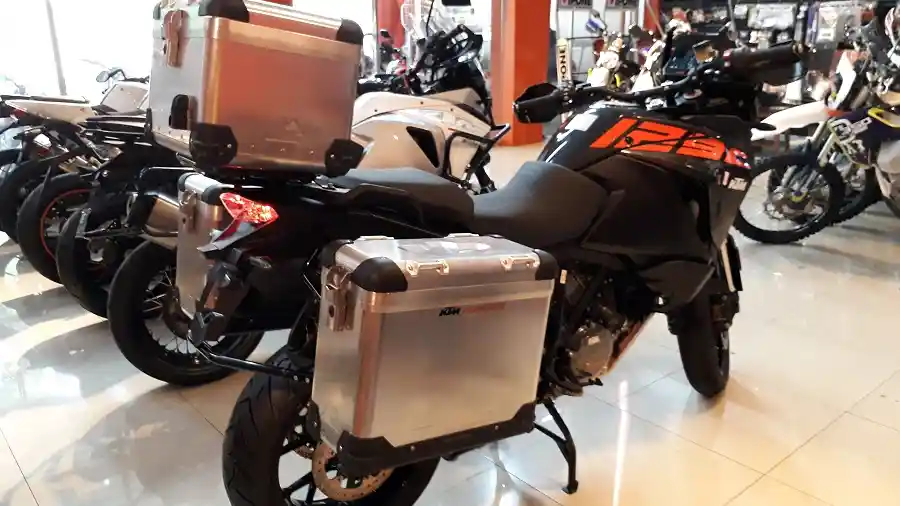 Nah, sejatinya motor yang sedang Anda lihat fotonya ini bukanlah versi standar, melainkan sudah model KTM 1290 Super Adventure S plus. Artinya, sejumlah aksesori optional sudah melekat pada motor berkapasitas mesin 1.301 cc tersebut.