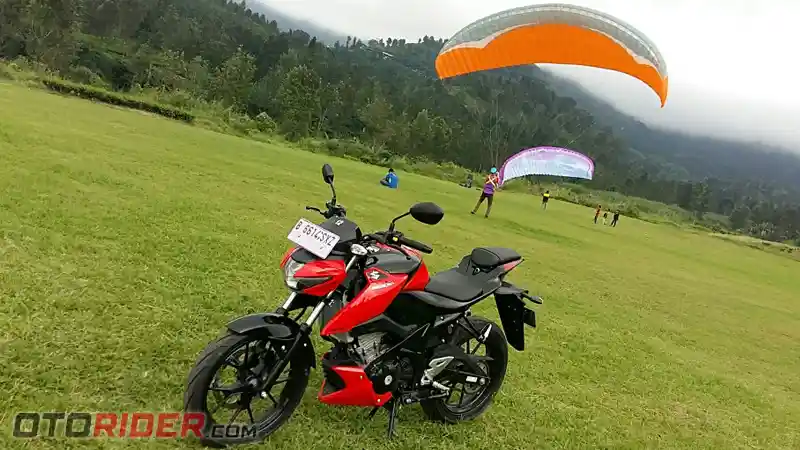 Tenaga optimal motor saat melalui rute Gadog menuju Gunung Mas, Puncak yang menanjak. Dibukanya satu jalur menuju arah Cianjur juga membuat kondisi jalan lebih lengang dan kesempatan ini tak disiakan untuk menggali potensi mesin. Dan terbukti, mesin tipikal overbore 150 cc dari Suzuki ini enak dipakai di putaran tinggi.