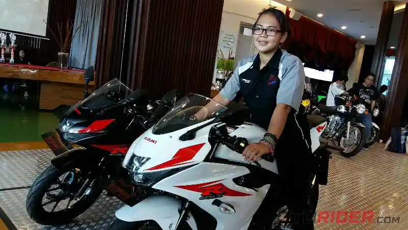 Dengan desainnya yang sporty, dan kerap dimodifikasi sebagai tunggangan balap, motor jenis sport fairing identik sebagai kendaraan kaum pria. Namun Suzuki GSX-R150 yang punya bodi ramping ternyata juga cocok dipakai kaum Hawa.