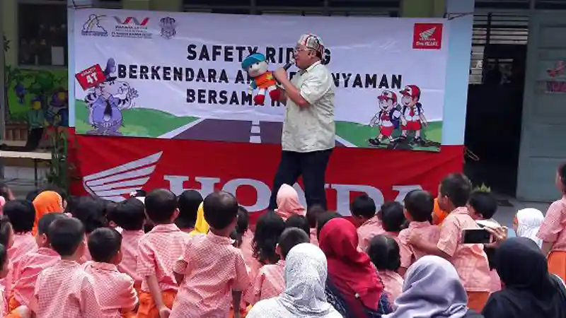 Banyak cara untuk mengenalkan safety riding bagi anak-anak. Salah satunya dilakukan Wahana Honda, Main Dealer Motor Honda area DKI Jakarta dan Tangerang yang mengenalkan safety riding lewat dongeng.