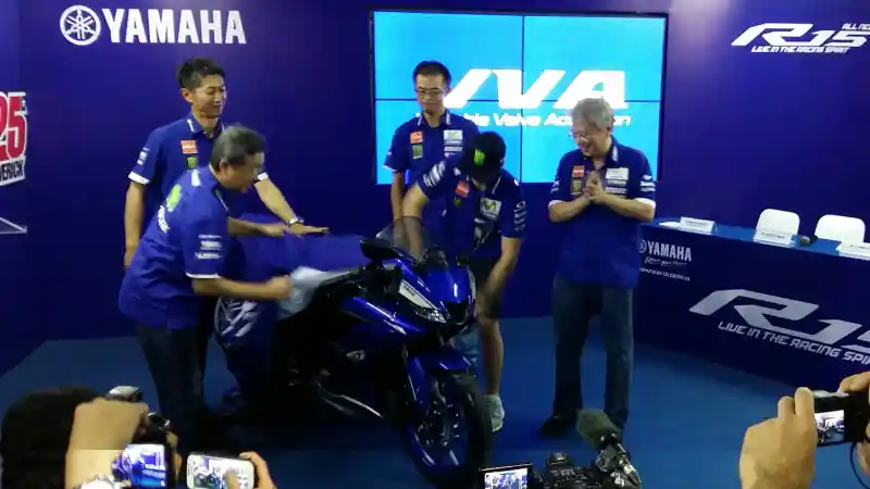 Bersamaan dengan hadirnya dua andalan baru tim MotoGP, Movistar Yamaha yakni Valentino Rossi dan Maverick Vinales, PT Yamaha Indonesia Motor Manufacturing (YIMM) turut mengenalkan produk baru mereka YZF-R15 hari ini (23/1).