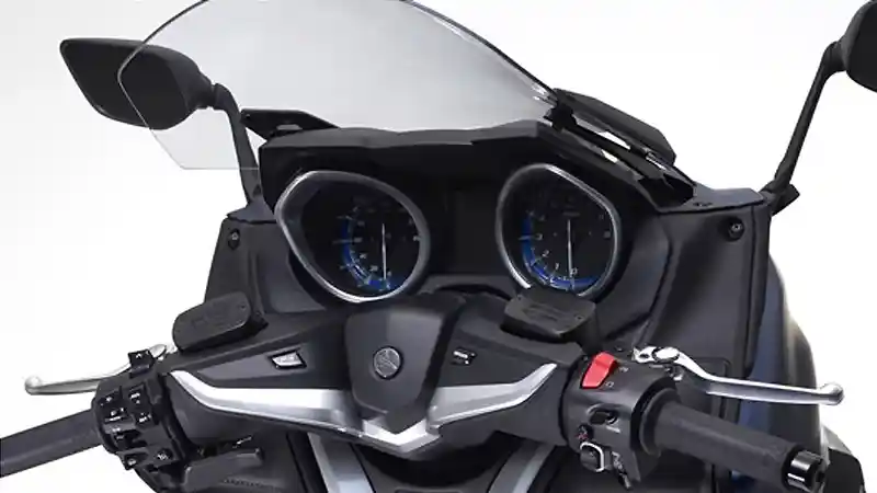 Tapi jangan anggap TMax DX motor yang kuno. Coba lihat setangnya, di mana bagian saklar sampingnya menunjukan banyak tombol untuk beragam fungsi. Selain itu, tuas rem dan windshieldnya juga sudah full adjustable.