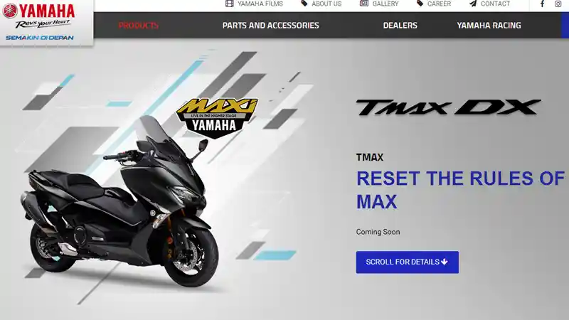 Sayangnya, hanya sedikit sekali keterangan mengenai TMax DX yang terlihat di website tersebut. Diantaranya hanya tagline 'Reset The Rules of Max' yang menegaskan posisi TMax DX sebagai penerus TMax yang sempat dijual di Indonesia. Lalu ada juga gambar setang dan spidometernya.