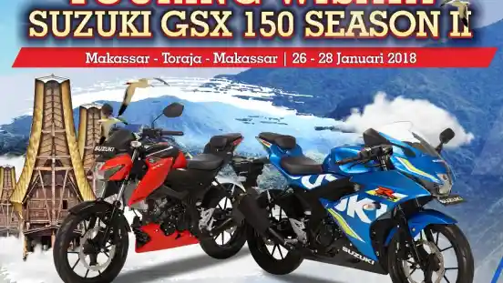 Setelah sukses menggelar Touring Wisata season pertama Agustus tahun lalu dengan rute Makassar, Bulukumba, Bantaeng, Bone dan kembali ke Makassar, komunitas pengguna Suzuki GSX-150 bekerjasama dengan Main Dealer Suzuki wilayah Sulawesi, PT Sinar Galesong Pratama (PT SGM) kembali menggelar event yang sama. Event ini bertajuk Touring Wisata Suzuki GSX 150 season 2 dengan rute Makassar - Tana Toraja, melewati 12 Kabupaten dan total perjalanan sejauh kurang lebih 800 km.