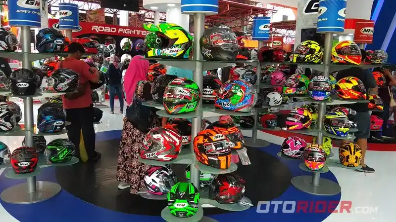 Hari terakhir Jakarta Fair Kemayoran dimanfaatkan booth helm bermerek NHK dan GM yang menawarkan harga spesial, serta hadiah langsung untuk setiap pembelian produk helm. Banyak tipe yang bisa dipilih di Booth NHK, mulai dari half face, full face hingga helm cross.