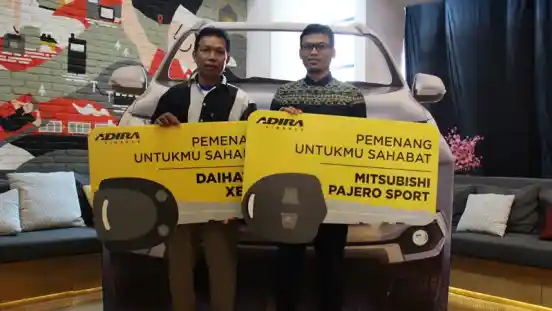 Adira Finance mengumumkan pemenang utama program undian bertajuk ‘Untukmu Sahabat’ yang mendapatkan satu unit mobil Mitsubishi Pajero (17/1). Sebagai bagian dari rangkaian kegiatan HUT Adira Finance ke-27 yang diselenggarakan secara meriah tahun lalu, 'Untukmu Sahabat' Adira Finance merupakan program undian yang ditunjukan sebagai apresiasi kepada loyal customer atau konsumen yang masih aktif memiliki pembiayaan motor.