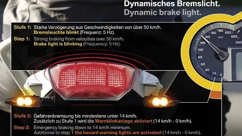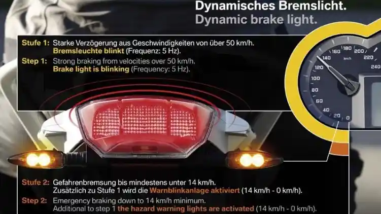 Tujuan BMW Motorrad menggunakan indikator lampu pengereman ini agar kendaraan yang berada di belakang tidak melakukan pengereman mendadak. Indikator dan lampu rem model ini terinspirasi dari model BMW R Nine T 2018 di Jepang.