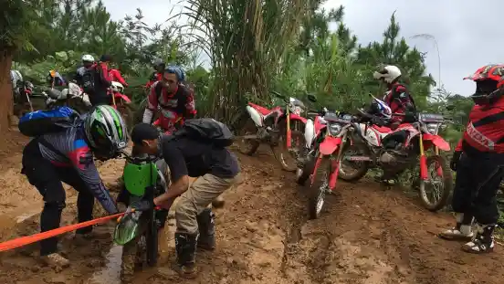 Kegiatan itu sendiri menggunakan motor Honda CRF150L yang sudah berlangsung akhir April lalu. ”Ketangguhan Honda CRF150L melalui jalur yang sulit setelah diguyur hujan dapat memberikan kesan tersendiri pada kegiatan kali ini,” papar PIC Community Development Wahana, Agus Sigit.