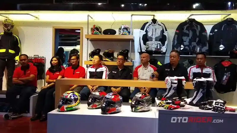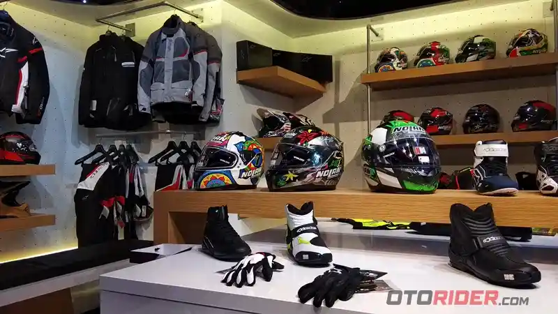 Berbagai jenis apparel dan safety gear yang ditawarkan seperti helm dengan merek Nolan, X-lite dan Grex. Sedangkan untuk safety gear seperti wearpack, sepatu, tas, jaket dan celana mengusung merek Alpinestar, serta boks motor dengan merek Shad.