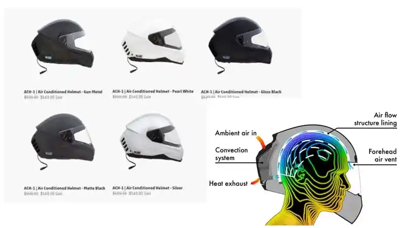 Dilihat dari keluhan pemakaian helm fullface untuk berkendara jarak jauh, sebuah perusahan AC berkerjasama dengan pabrikan Rolls-Royce, Bentley dan Ferrari, memberikan sebuah masukan untuk helm yang mengusung teknologi berpendingin AC.
