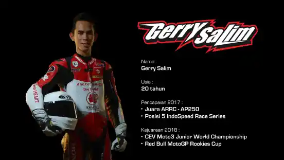 Jejak rekam Gerry Salim sendiri mengawali karir balap dari Astra Honda Racing School (AHRS) dan memulai karirnya di kelas Moto3 Junior World Championship sebagai pembalap Rookie.