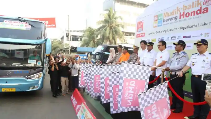 Pemudik diberangkatkan dari kantor AHM, Sunter, Jakarta Utara dengan menggunakan 56 bus eksekutif pada Minggu (10/6) pagi hari. Sebanyak 704 konsumen tujuan Semarang diberangkatkan dengan 14 bus serta sebanyak 1.452 pemudik tujuan Yogyakarta diberangkatkan dengan menggunakan 31 bus sementara 469 konsumen tujuan Solo diberangkatkan dengan 11 bus.