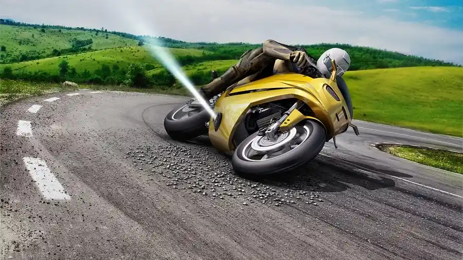 Ketika Anda dalam posisi rebah di motor dan kemudian kehilangan daya cengkram ban hingga membuat akan jatuh, otomotis tekanan gas ini, yang memiliki gaya berlawanan dengan posisi ban, akan langsung mendorong motor kembali berdiri seimbang.