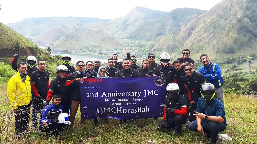 Puluhan jurnalis yang tergabung dalam komunitas pengguna motor Maxi Yamaha Series (TMax, XMax, NMax, Aerox 155 dan Lexi) dengan emblem Journalist Max Community (JMC) menggelar hari jadi kedua dengan touring dari Medan menuju Paropo Danau Tona, Sumatera Utara (30 Maret – 1 April 2018).