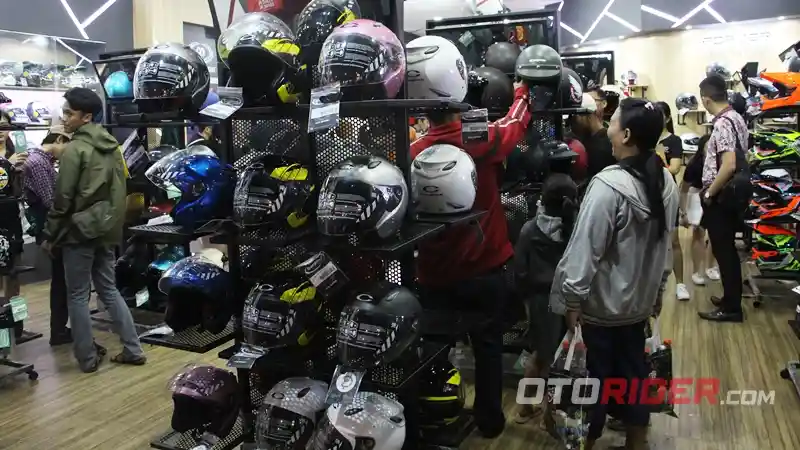“Untuk promo yang ditawarkan seperti helm half face Cargloos CX Series dibanderol Rp 100 ribu, Arai dan KBC diskon 10% all item. Promo yang menarik dan yang ditunggu-tunggu adalah program supershock, yaitu sejumlah helm yang didiskon sebesar 50%, dan hanya satu kali dalam satu hari tergantung dari pembawa acara yang akan membuka acara, biasanya supershock ada di jam 17:00 WIB, 19:00 WIB dan 22:00 WIB,” ujar Dimas Prayogo, Kepala Booth Cargloss.