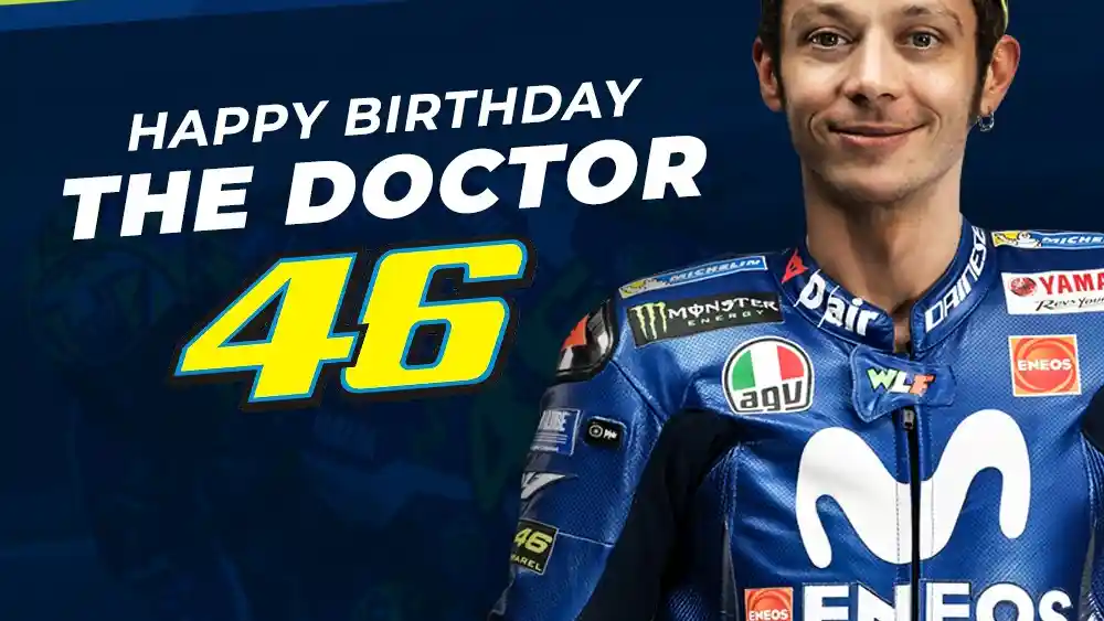 Tepat hari ini juara sembilan kali MotoGp Velentino Rossi, merayakan hari ulang tahun yang ke-39. Pembalap yang lahir pada 16 Februari 1979 di Urbino, Italia ini diberi ucapan selamat melalui sosial media Yamaha Indonesia yang tepat dipublikasikan di hari ulang tahunnya.