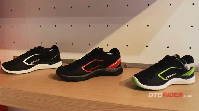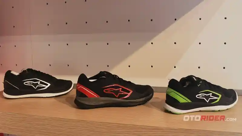 Kebetulan saat Otorider.com sedang berkunjung ke DeRide, toko apparel yang sudah dikenal kalangan bikers, justru menemukan sepatu khusus bikers. “Di DeRide ini kami menjual sepatu casual dengan merek Alpinestar, dari sepatu casual Alpinestar ini tersedia tiga pilihan warna, yaitu hitam putih, hitam merah dan hitam hijau,” ujar Irwansyah, Perwakilan dari DeRide Store Jakarta.