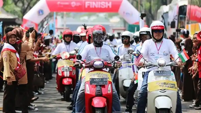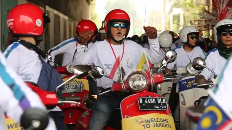 Gelaran pesta Asian Games 2018 bukan hanya dirayakan para atlet melainkan juga komunitas motor. Begini ceritanya.
