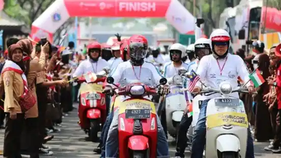 Serunya Komunitas Vespa Kawal Kirab Obor Asian Games 2018