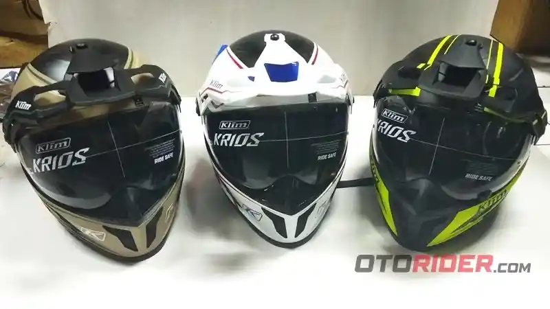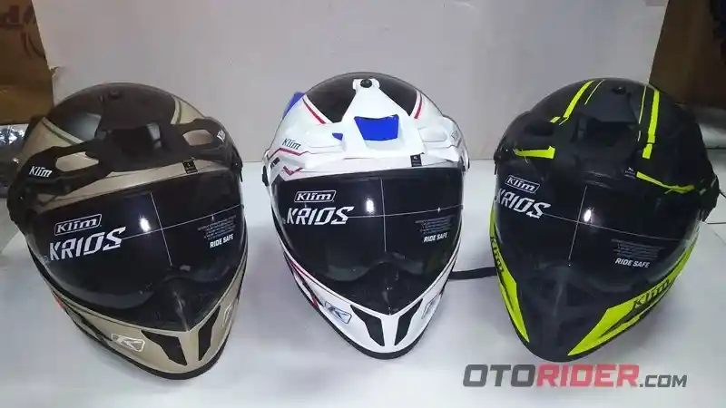 “Untuk helm Klim Krios adventure ini kami jual Rp 8,25 juta dengan tiga pilihan warna,” ujar Nandang Taryana, Kepala Toko Anjany Racing. Penasaran?